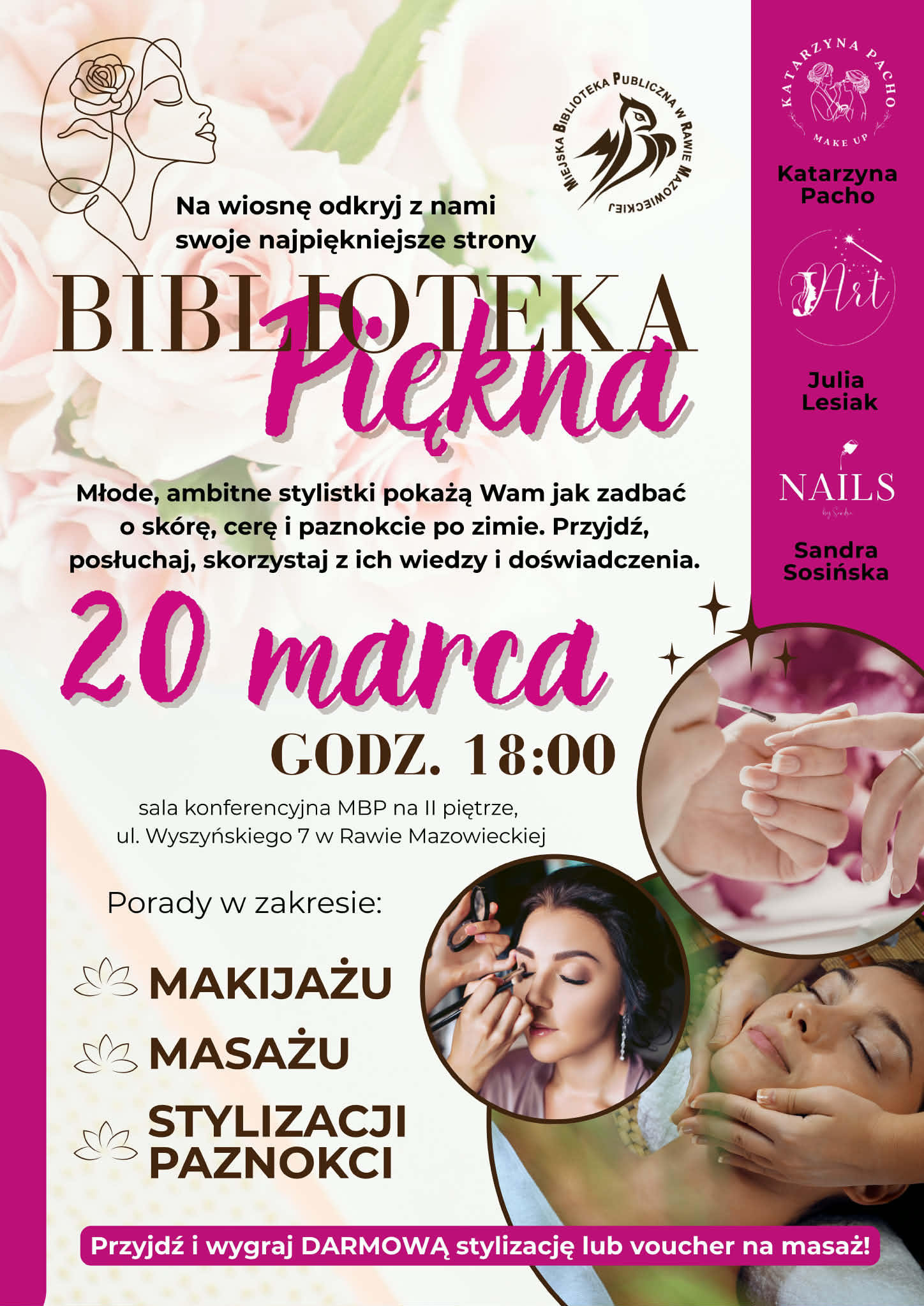 Wieczór piękna w bibliotece to inicjatywa, z którą wyszły młode, ambitne stylistki. Dziewczyny pokażą Wam jak zadbać o skórę, cerę i paznokcie po zimie