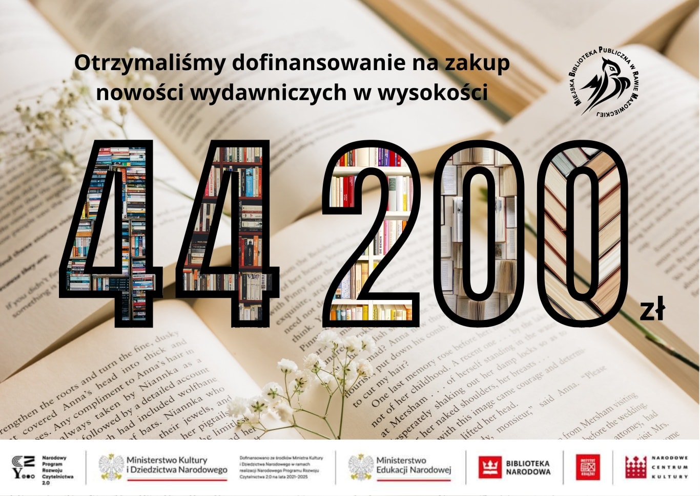 Otrzymaliśmy rekordowe w ostatnim czasie dofinansowanie w wysokości 44 200 zł na zakup nowości wydawniczych! 💰🥰 Za projekt odpowiada u nas Anna Iwańska 🤝👌😊