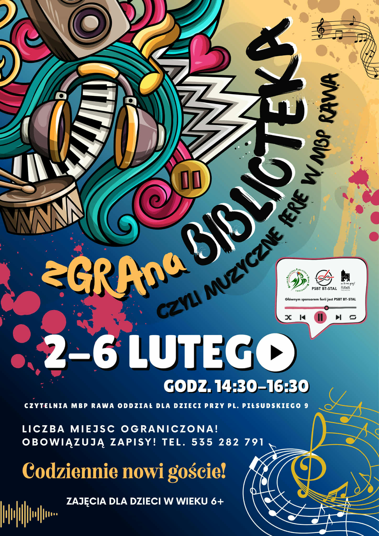 Już w pierwszym tygodniu ferii startuje zGRAna BIBLIOTEKA, czyli muzyczne ferie w MBP Rawa! 🎧📚