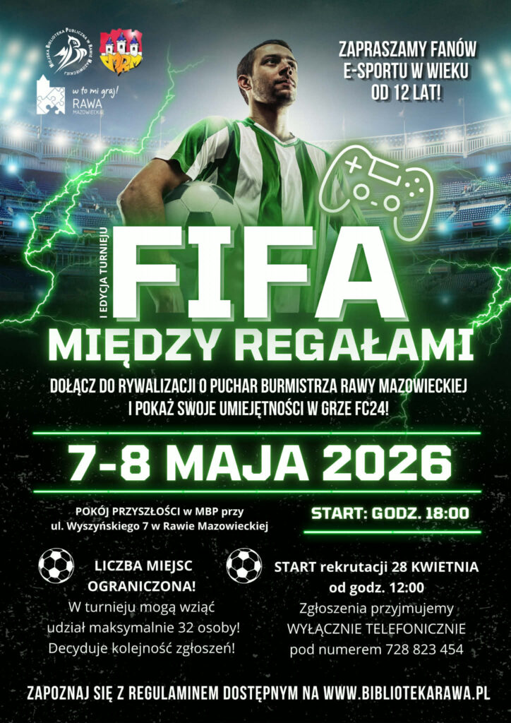 - Organizatorem „FIFA między regałami” jest Miejska Biblioteka Publiczna w Rawie Mazowieckiej we współpracy z Młodzieżową Radą Miasta Rawa Mazowiecka.