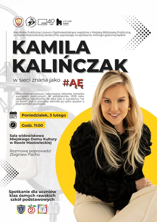 Spotkanie zainicjowało Katolickie Publiczne Liceum Ogólnokształcące im. św. Jana Pawła II 🙌😊 Rozmowę z panią Kamilą będzie miał przyjemność poprowadzić Zibi Pacho, dyrektor naszej biblioteki 👥🗣️🥰