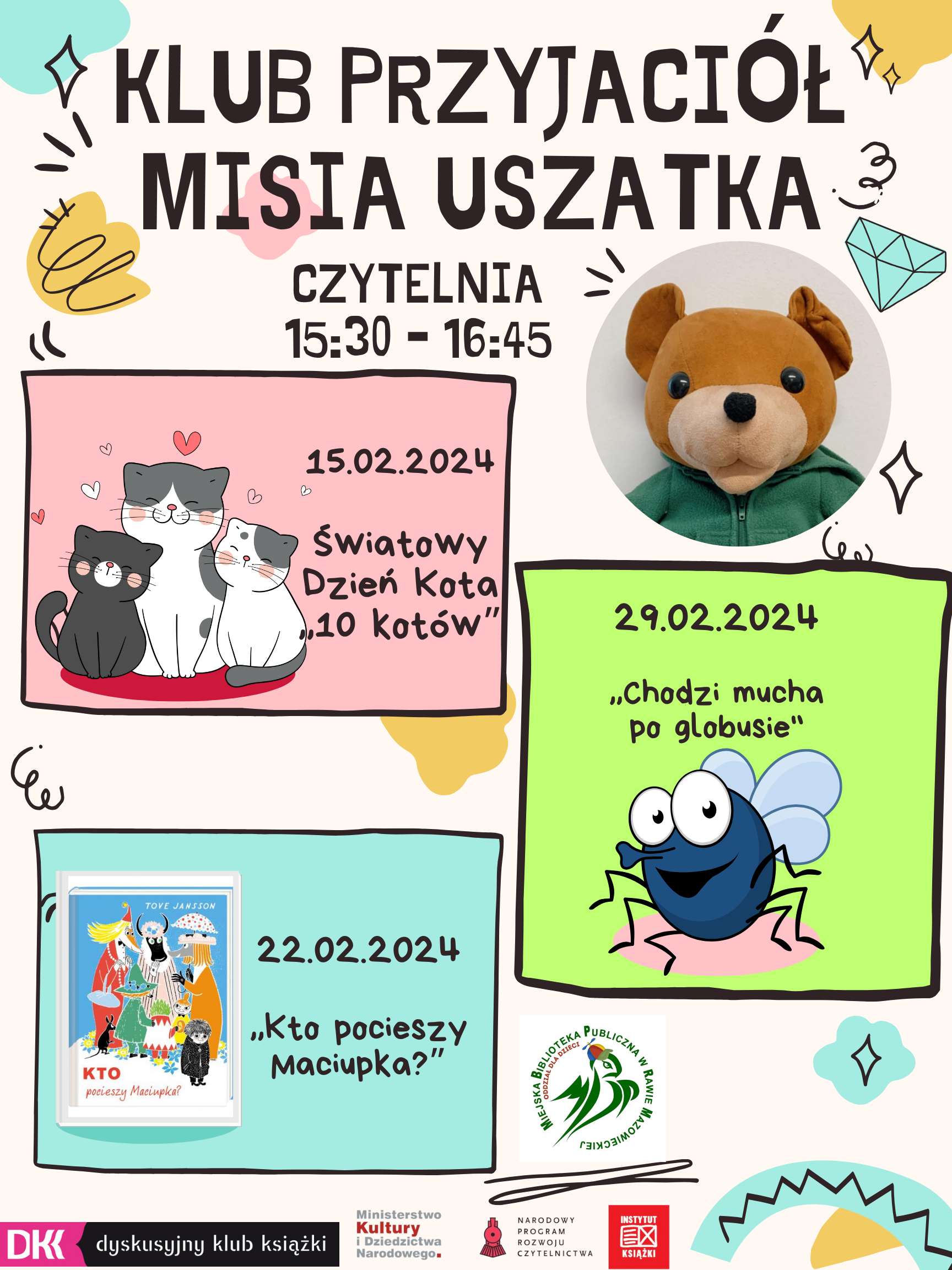 Po feriach zapraszamy na wznowienie spotkań Klubu Przyjaciół Misia Uszatka.