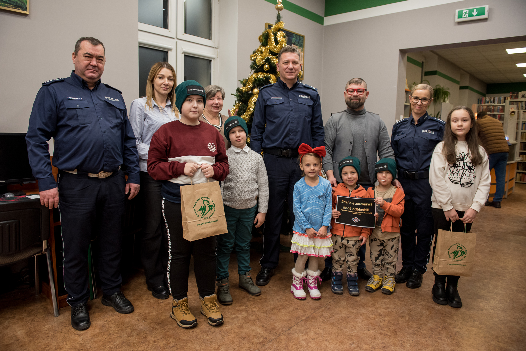 Nagrody w postaci czapek, kamizelek odblaskowych i odblasków, książek oraz słodkości wręczyli laureatom mł. insp. Piotr Bartkiewicz, komendant rawskiej KPP, asp. sztab. Arkadiusz Gajek, naczelnik wydziału ruchu drogowego oraz Zbigniew Pacho, dyrektor naszej biblioteki. Konkurs zorganizowaliśmy bowiem we współpracy z Komendą Powiatową Policji w Rawie Mazowieckiej