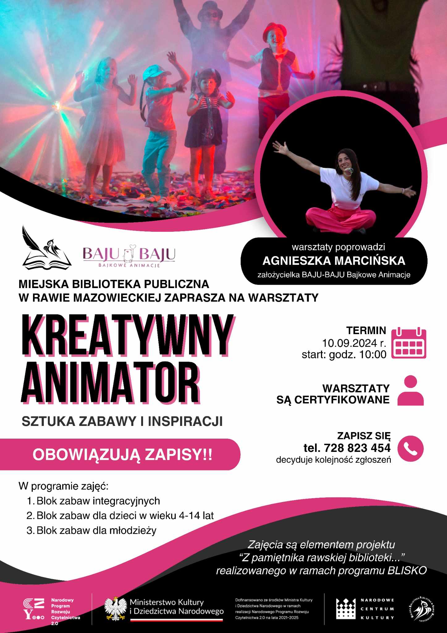 Warsztaty realizowane s膮 w ramach naszego projektu BLISKO – „Z pami臋tnika rawskiej biblioteki…”, kt贸ry uzyska艂 dofinansowanie ze 艣rodk贸w Ministra Kultury i Dziedzictwa Narodowego w ramach realizacji Narodowego Programu Rozwoju Czytelnictwa 2.0. na lata 2021-2025.
