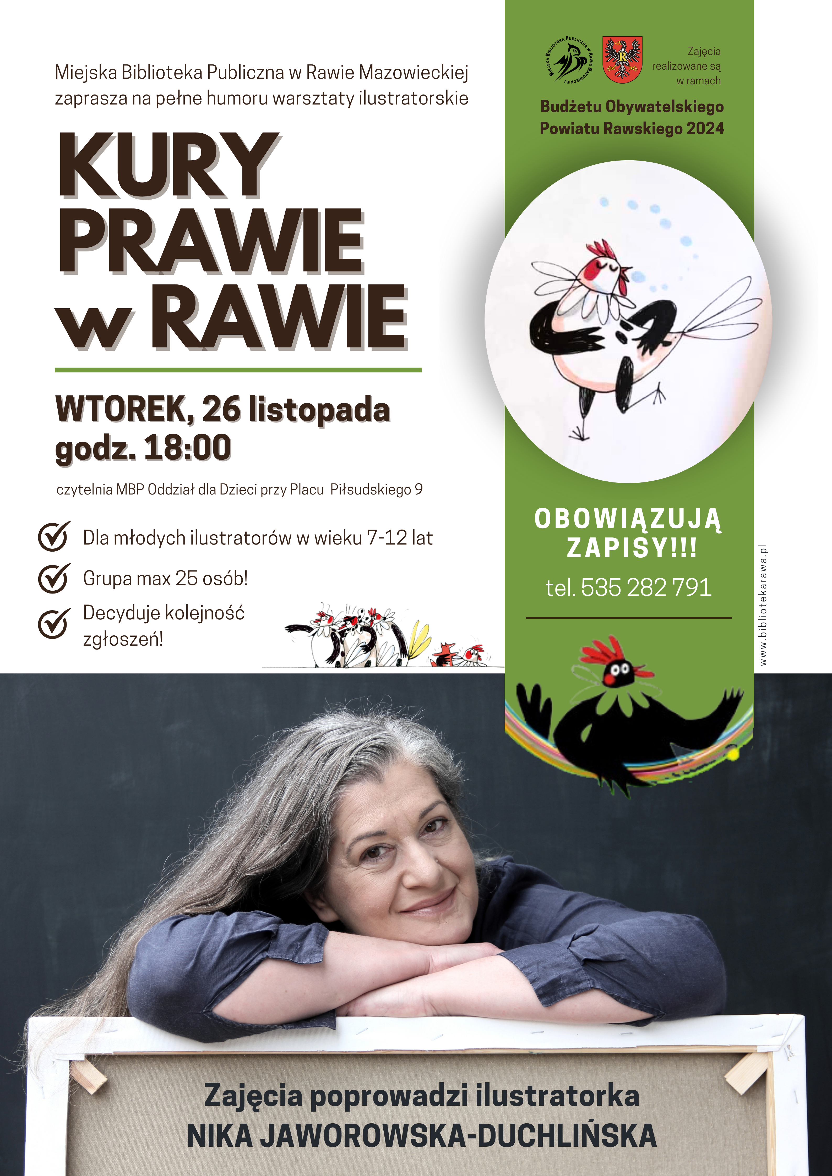 Tym oto sposobem, mamy zaszczyt zaprosić was na pełne humoru warsztaty ilustratorskie KURY PRAWIE W RAWIE.