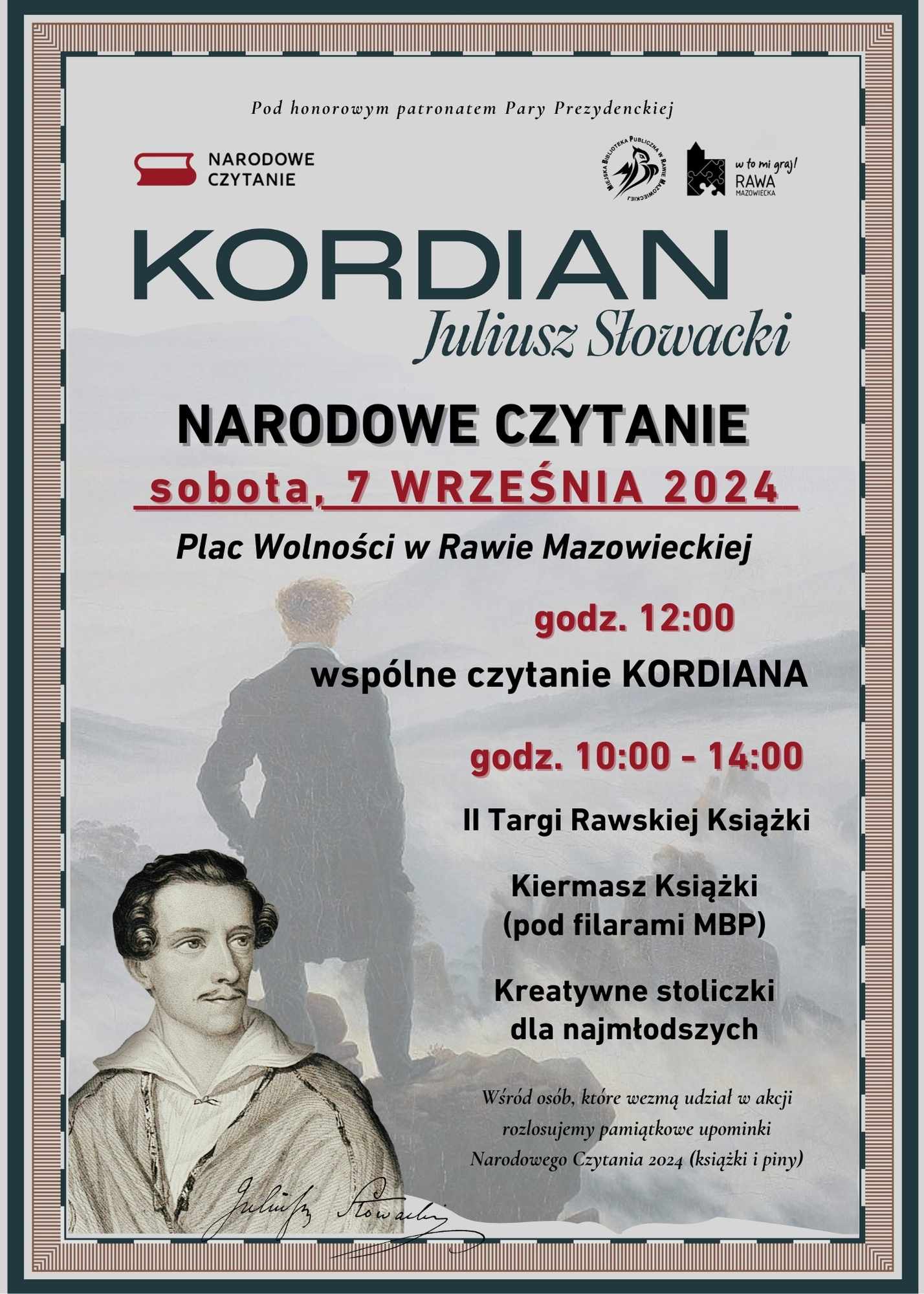 Najwa偶niejszym punktem wydarzenia b臋dzie oczywi艣cie wsp贸lne czytanie lektury roku, czyli KORDIANA Juliusza S艂owackiego