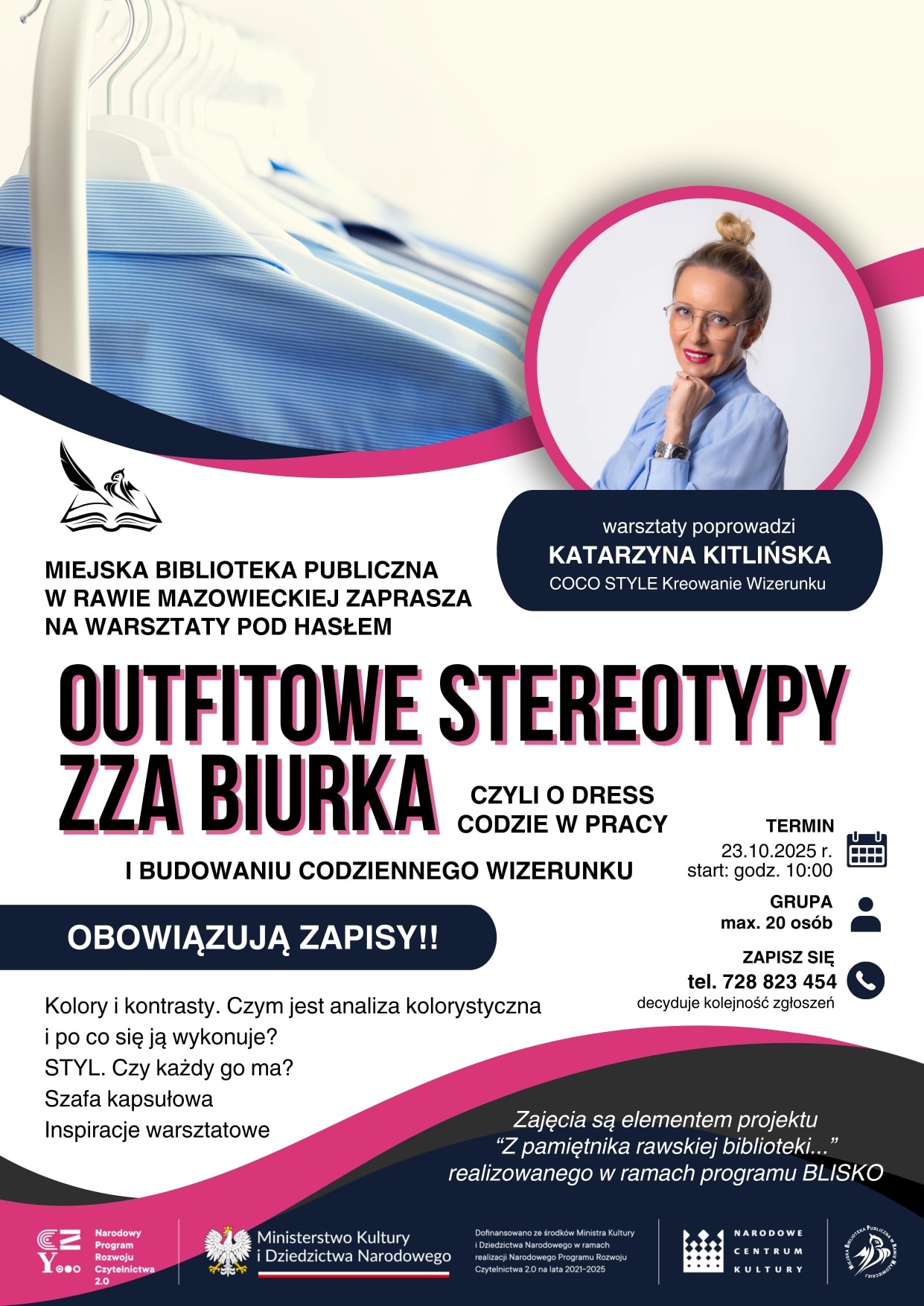 Serdecznie zapraszamy na warsztaty, podczas kt贸rych porozmawiamy o OUTFITOWYCH STEREOTYPACH ZZA BIURKA, czyli o dress codzie w pracy i budowaniu codziennego wizerunku