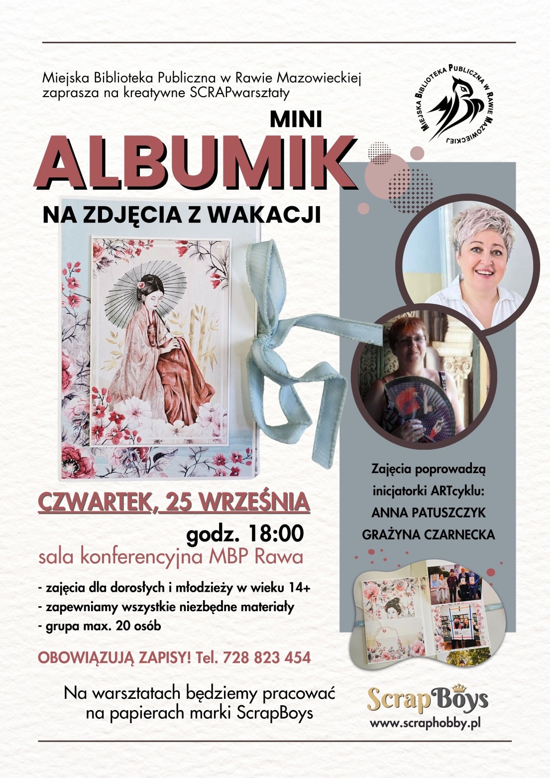 wrze艣nia tj. CZWARTEK w sali konferencyjnej na II pi臋trze. Tradycyjnie b臋dziemy pracowa膰 na pi臋knych papierach od ScrapBoys