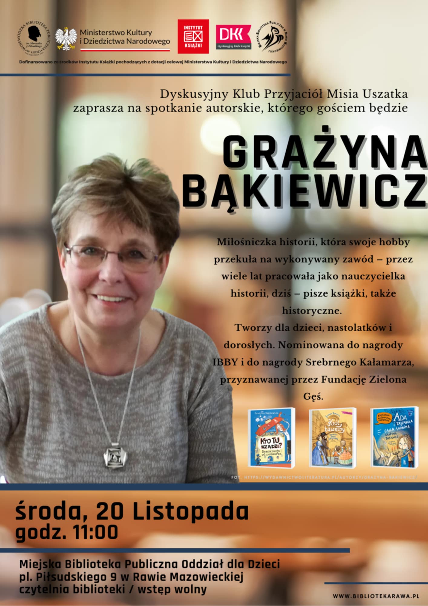 Spotkanie autorskie odbędzie się w środę, 20 listopada o godzinie 11:00 w czytelni Oddziału dla Dzieci.