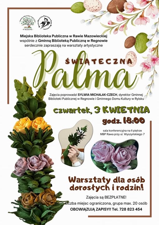 Serdecznie zapraszamy na zaj臋cia, podczas kt贸rych b臋dziemy tworzy膰 PALM臉 WIELKANOCN膭