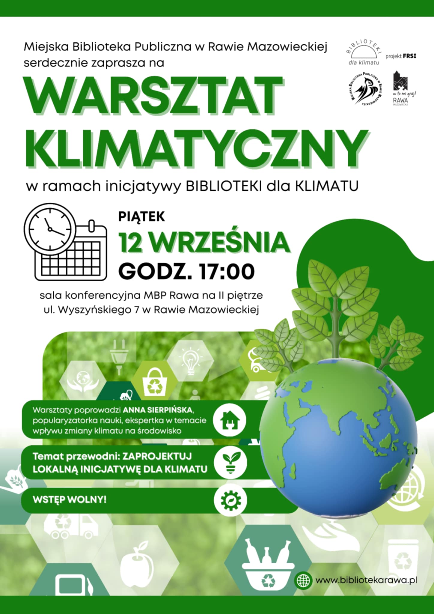 Warsztat odbędzie się w ramach inicjatywy #bibliotekidlaklimatu Fundacja FRSI 🙌
