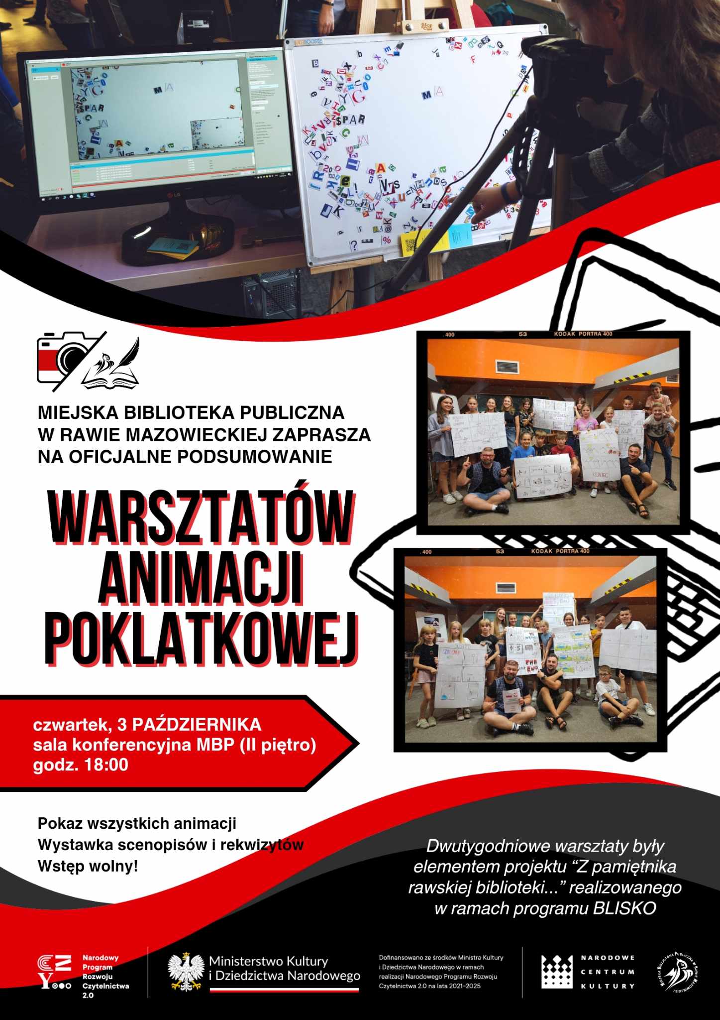 Warsztaty zrealizowane zostały w ramach naszego projektu BLISKO – „Z pamiętnika rawskiej biblioteki”, który uzyskał dofinansowanie ze środków Ministra Kultury i Dziedzictwa Narodowego w ramach realizacji Narodowego Programu Rozwoju Czytelnictwa 2.0. na lata 2021-2025.